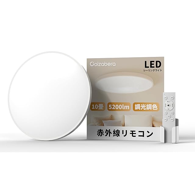 Coizabera LEDシーリングライト 10畳 45W 5200lm 調光調色 薄型 赤外線リモコン操作 豆電球常夜灯 天井照明器具 おしゃれ 電気 蛍光灯 Ceiling Light 8畳 10畳 和室/洋室/寝室/玄関/リビング/キッチン適用 (アプリ操作機能なし)【赤外線リモコン】