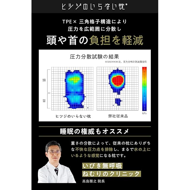 【広範囲の体圧分散】人間工学に基づいて作られた三角格子構造で頭部にかかる圧力を分散