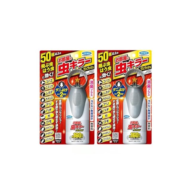 お部屋の虫キラー ワンプッシュ 約160畳分(40プッシュ) スプレー 無香料 消臭プラス 飛ぶ虫 はう虫 駆除 殺虫剤×2個【まとめ買い】 ユスリカ適用