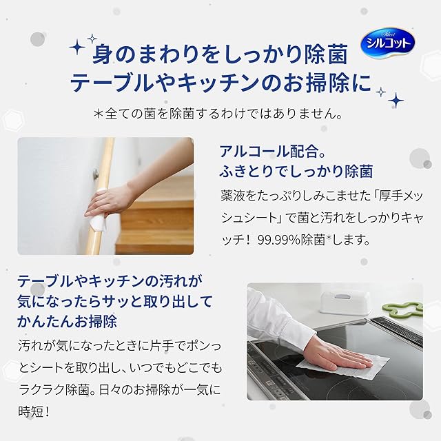 お出かけ先に持ち運びやすい少入枚数の、シルコットウェットティッシュ外出用です。