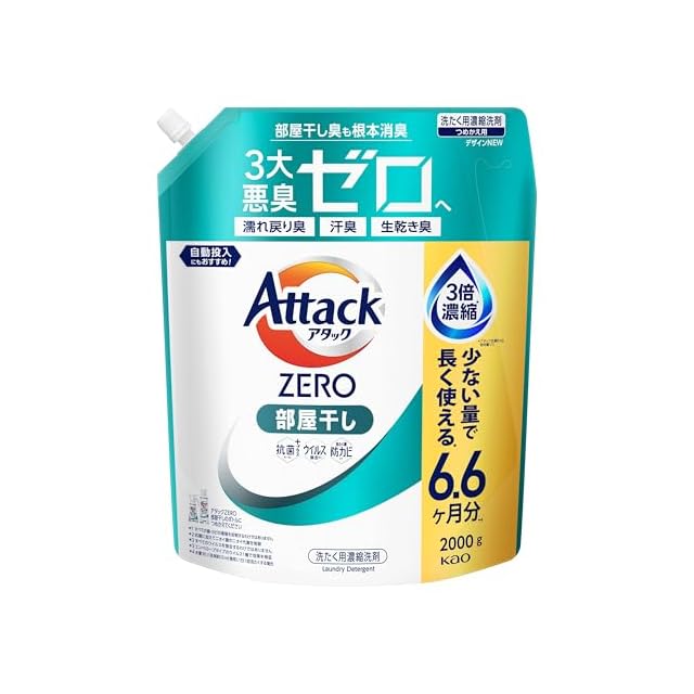 アタックZERO アタック液体史上 最高の清潔力。無菌レベルの消臭力 部屋干し 詰め替え 2000g