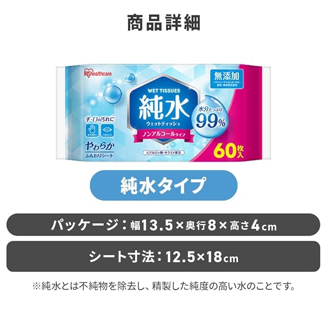 【10個セット】アイリスオーヤマ 除菌ができるウェットティッシュ 純水タイプ 1800枚(60枚入×3P×10個) WTS-60P3P