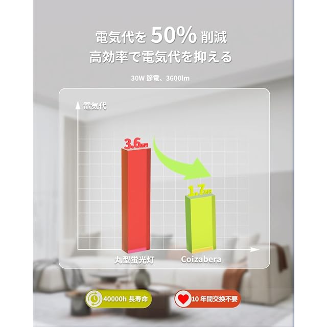 【省エネな明るさで経済的】当製品は、わずか28Wの消費電力で3600lmの明るさを実現します。LED照明器具の利用により、経済性と長寿命を両立しています。効率的な明るさは省エネ設計であり、環境にも配慮しています。これにより、電気代を抑えながら経済的にご利用いただけます。