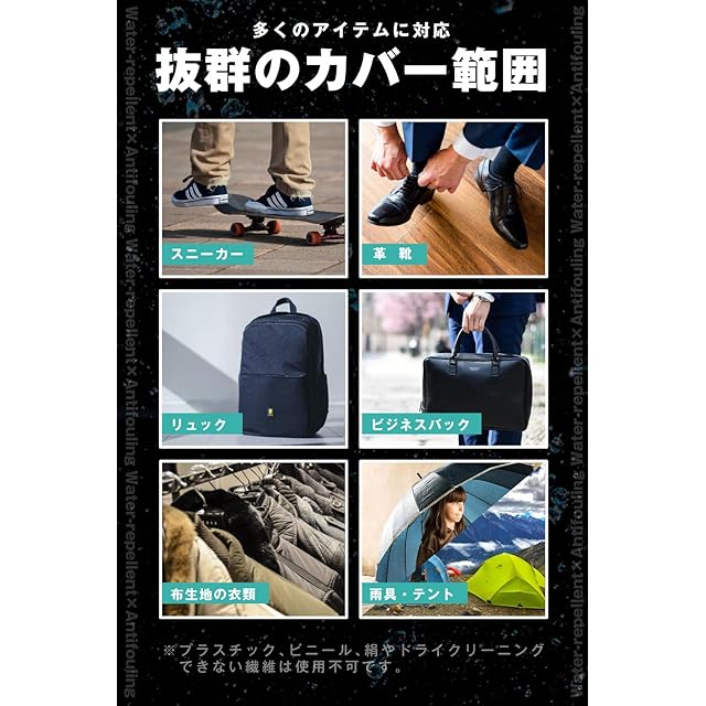 ✅【5種の防水スプレーと比較試験を行いTOPレベルの防水・防汚力を実証】市場で支持されている7つの防水スプレーを使用し、5種の素材【ポリエステル(スニーカー等)・ブロード(スニーカー・鞄など)・本革(革靴・鞄など)・綿(衣類等)】にて撥水・撥油試験を行いすべての素材でTOPレベルであることを実証しました。
