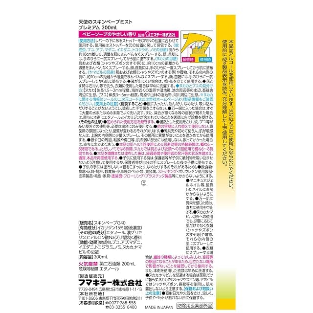 スキンベープ 天使のスキンベープ 虫除けスプレー イカリジン ミストタイプ 200ml プレミアム ベビーソープの香り×2個 トコジラミ適用 フマキラー【まとめ買い】