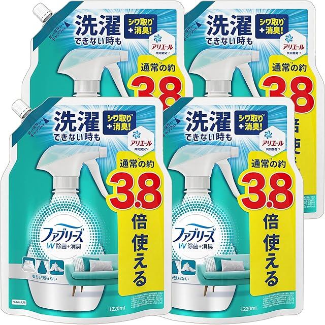ファブリーズ W除菌+消臭スプレー 布用 香りが残らない 詰め替え 超BIG特大 1220mLx4袋