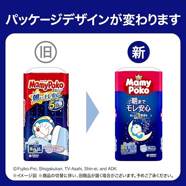 【パンツ ビッグサイズ】マミーポコ 夜用パンツ ドラえもん オムツ(12~22kg)112枚(28枚×4) [ケース品]