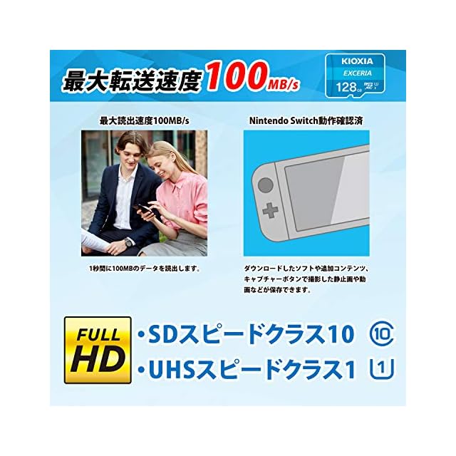 KIOXIA(キオクシア) 旧東芝メモリ microSD 128GB UHS-I Class10 (最大読出速度100MB/s) Nintendo Switch動作確認済 国内サポート正規品 メーカー5年 KLMEA128G