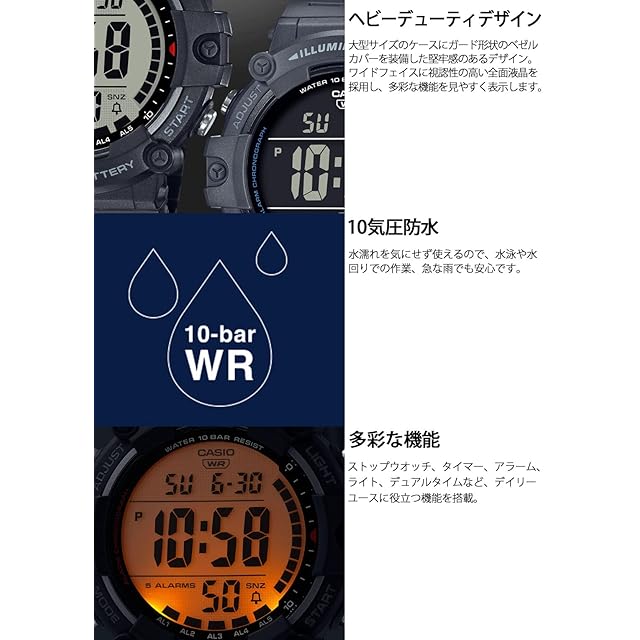 ワイド液晶で画面が見やすい多機能デジタルウオッチです