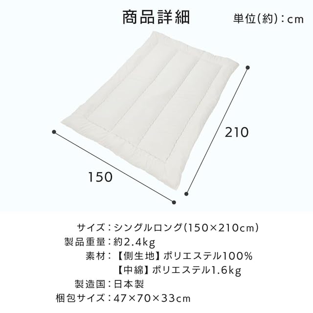 アイリスプラザ 洗える掛け布団 日本製 アイボリー シングル 丸洗いOKでいつでも清潔 軽量2.4kg 抗菌・防臭・防ダニ 通年での使用可能 幅約150×奥行約210×高さ約8 ポリエステル100%で 速乾性 心地よい暖かさ