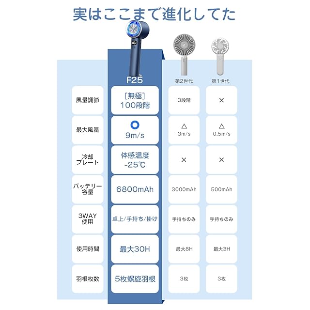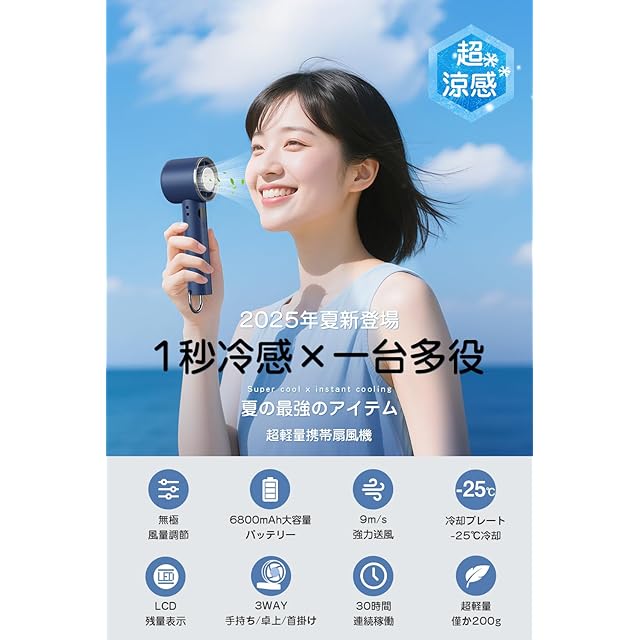 ハンディファン 冷感プレート 【2025新型登場 1秒瞬間冷却】 携帯扇風機 6800mAh大容量 usb充電式 手持ち扇風機 首掛け ミニファン クーラー機能 軽量 強力 100段階調節 折り畳み 卓上 小型 冷却 ストラップ付き LEDディスプレイ 熱中症対策 スポーツ観戦/花火大会/オフィス/アウトドアなどに適用 (ネイビー)