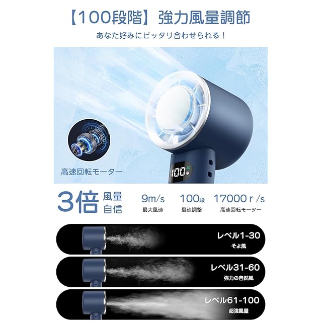 ✅【100段階風量調整&LEDディスプレイで風力管理】 このハンディファンは、100段階の風量調整機能を搭載しており、自分の好みに合わせた風量を細かく調節できます。特に、デザイン性と機能性を両立したLEDディスプレイで、風量のレベルやバッテリー残量を一目で確認でき、外出先でも便利に使用できます。携帯扇風機ならではの便利さで、風の強さやバッテリーの状態をリアルタイムでチェックできるのは、大きな利点なミニファンです。