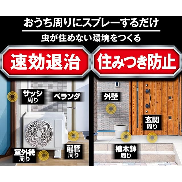 おうち周りにスプレーするだけで、1年効果が持続。虫が住めない環境をつくります。