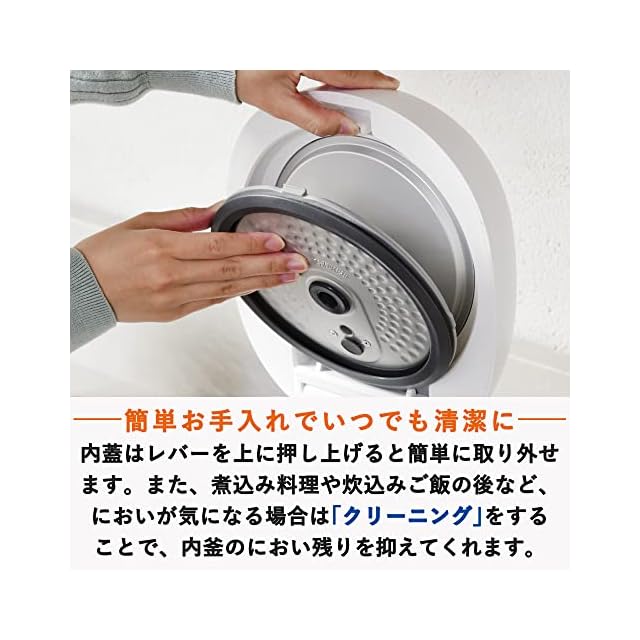 【商品仕様】◇本体サイズ:幅21.5×奥行25.8×高さ20.8cm ◇本体重量:2.6kg ◇電源コードの長さ:1.2m ◇電源:AC100V(50/60Hz) ◇消費電力:425W ◇1回当たりの炊飯時消費電力:91.783Wh ◇年間消費電力:36.73kWh/年※年間消費電力量は省エネ法・特定機器「電気ジャー炊飯器」の測定方法による数値です ◇期間:お買い上げ日より1年間。(の範囲については、取扱説明書をご確認ください。(一般家庭用以外(業務用など)に使用された場合の故障及び損傷などは対象外となります))