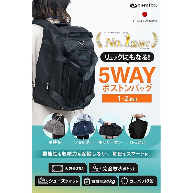 ✅【2024年新作!】 【驚異の5 WAY!】 「手持ち 」「肩掛け」「ショルダー」「リュック」「キャリーオン」 comfox ボストンバッグのコンセプトは『移動を楽しく、快適に。