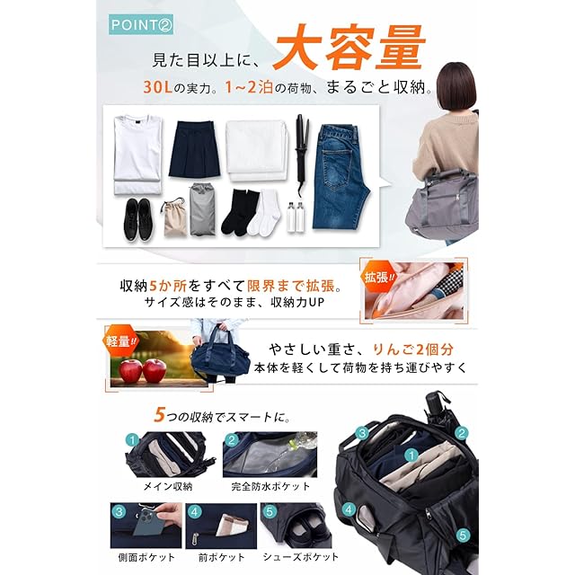 【サイズ】45×24.5×30(cm) 【重量】650g 【容量】30L (1泊~2泊 推奨)【生地】高級オックスフォード