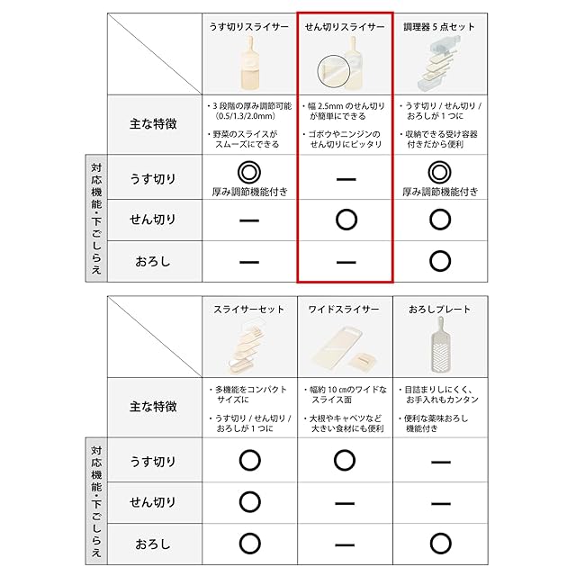 【せん切りが簡単に】幅約2.5mmの櫛刃と鋭い切れ味のセラミック刃で、野菜のせん切りが手早くできる(大根・人参・きゅうり・ゴボウなど)