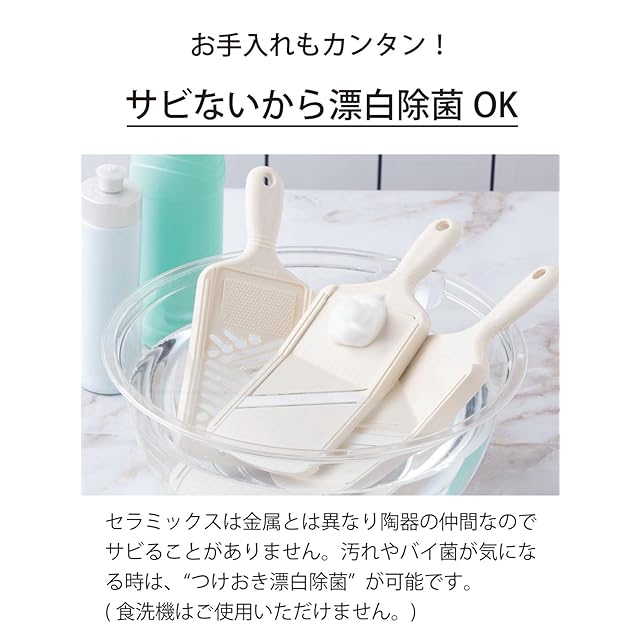 【お手入れ方法】セラミックス刃はサビないから、漂白除菌OK ※食器洗い乾燥機使用不可