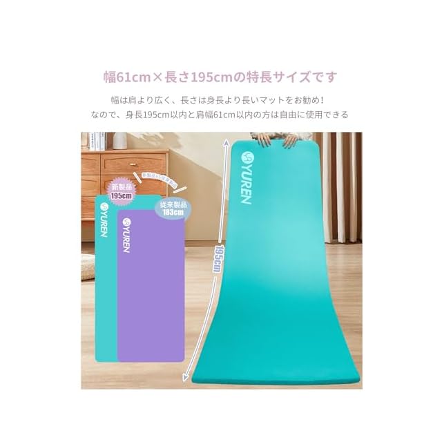 【厚さが通常マットの2倍】YUREN 20mmのマットは、驚くほどの厚みだから、クッション性・防音性に優れ、痛みを気にせずにトレーニングに集中することができます。 おすすめ用途:ヨガ、ホットヨガ、ピラティス、ストレッチ、筋トレ、腹筋ローラー、エクササイズ、トレーニング、体操、レジャーマット、アウトドアマットなど。