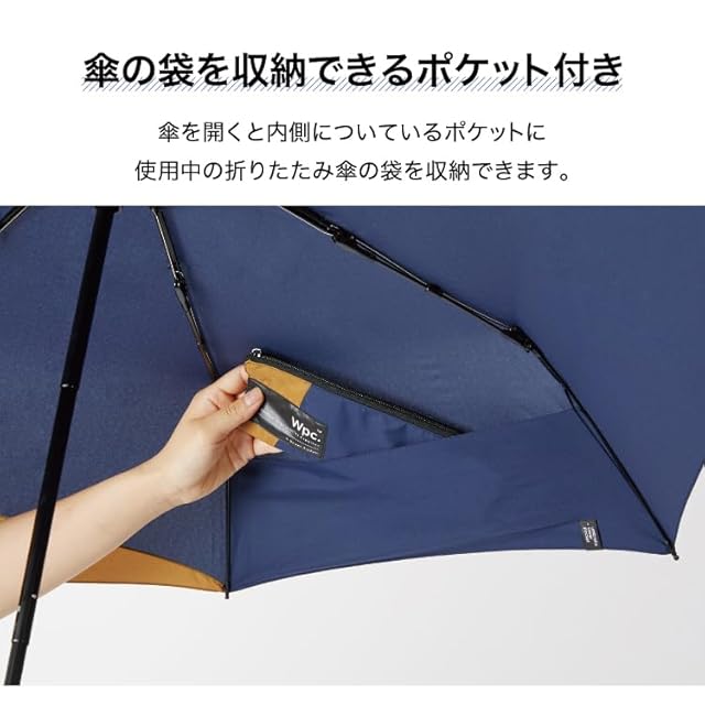 【後ろに大きく広がって、大事なバックパックを雨から守る折りたたみ傘】 折りたたみ時のコンパクトさはそのままに、傘を開くと骨の一部が後方に伸びる特殊構造で、背負ったバックパックを雨から守ります。 収納袋はファスナー付きで取り出しがスムーズ。 傘の内側にはポケットがあり、傘袋を収納すれば紛失防止にもなります。