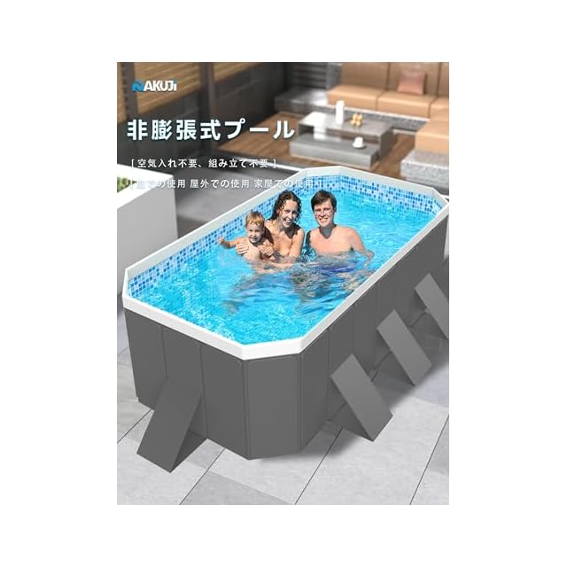 NAKUJI 【2025新改良 非膨張式】プール 空気入れ不要 折りたたみ 大型 ビニールプール 組み立て不要 収納便利 簡単な排水 子供用 家庭用 屋内用/アウトドア用 猛暑対策 水遊び 日本語説明書付き (外径260*165*50CM,内径225*125*50CM)