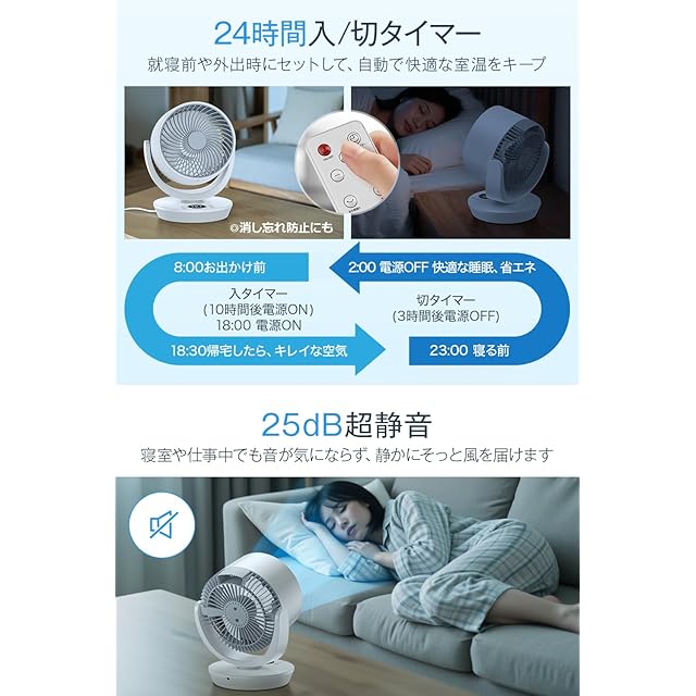 【高性能DCモーター搭載!パワフル送風×25dB超静音で快適な毎日を】パワーと静音性を両立したDCモーターを採用し、最大風量でも静かさはわずか25dB。睡眠中や仕事中でも風の音が気にならず、集中力や眠りを妨げません。3つの風モード(通常・自然・おやすみ)と8段階の風量調節で、暑さ対策はもちろん、冷えすぎ防止にも◎。必要なときに、必要なだけの風をあなたのそばに。