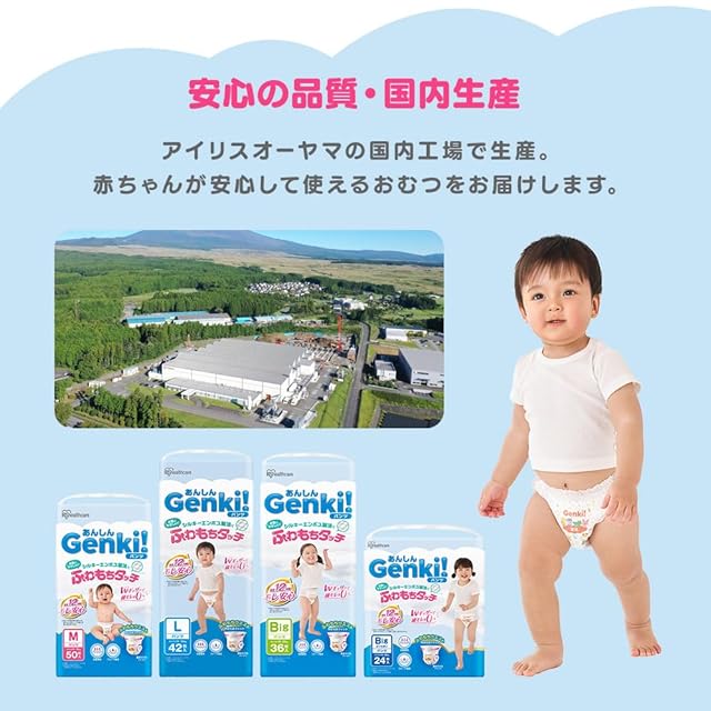 【パンツ Mサイズ】Genki! おむつ ケース品 150枚入(50枚入×3) アイリスオーヤマ