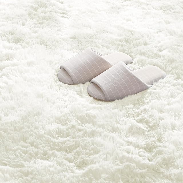 ROCYJULIN ラグマット カーペット 120x160cm 全厚約5cm おしゃれな北欧風シャギーラグ 極厚ウレタンフォーム15mm 洗えるラグ 滑り止め付き ふわっとした手触り 防音絨毯 オールシーズン快適に使用 長方形 ROCYJULIN(アイボリー 約1.5畳 )