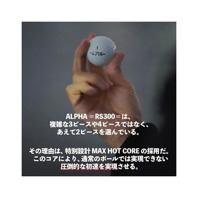 ALPHA=RS300=は複雑な3ピースや4ピースではなく、あえて2ピースを選んでいる。その理由は、MAX HOT COREを採用だ。このコアにより、通常のボールでは実現できない圧倒的な初速を実現される。