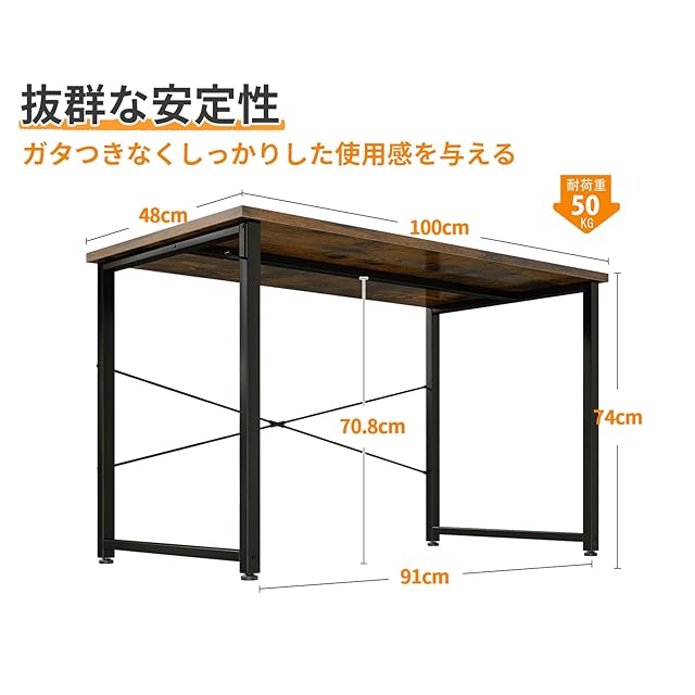 【商品仕様】シンプルでインテリアに馴染むおしゃれなデスクです。◆本体サイズ:幅100×奥行48×高さ74CM | 本体重量:7KG | 日本語組立説明書あり | お客様組立て品で、レンチも付属しており、別途で工具を買う必要がないです。