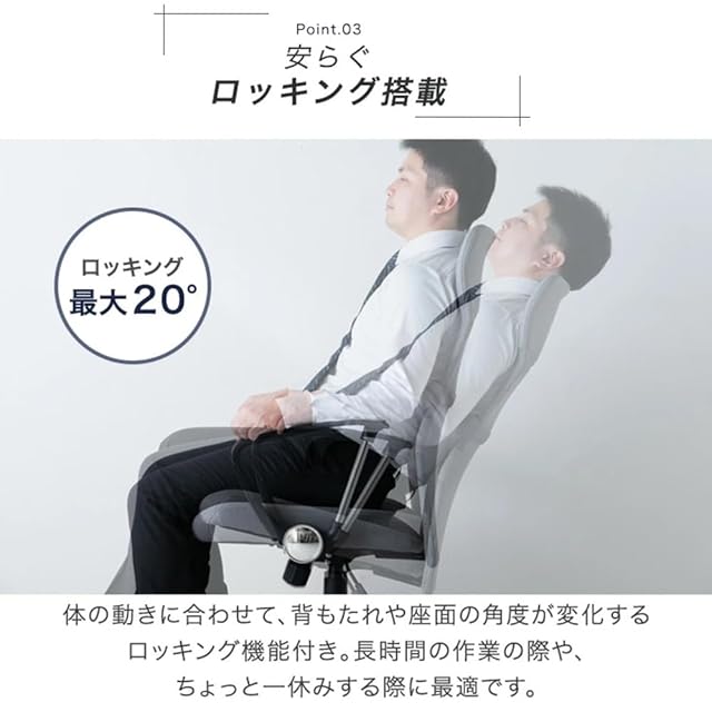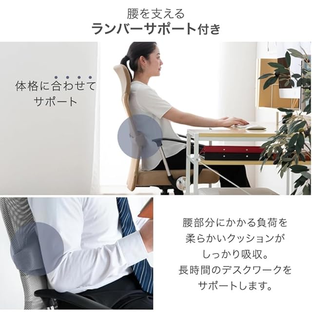 【スタッフのおすすめポイント!】 ・アームレストは固定/可動から選べる2タイプ・腰への負担を軽減する腰サポートクッション付・床を傷付けにくいPUキャスター・通気性に優れたプロ仕様の競技用メッシュ採用・上半身をしっかり受け止めるハイバック・座ったまま伸びが出来るロッキング機能