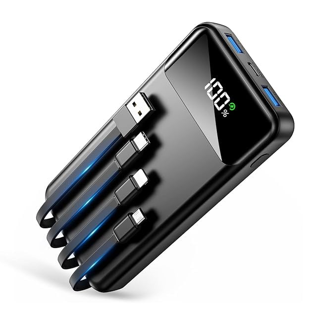 【急速充電可能なポート・4種類ケーブル内蔵】最大5V/2.4Aで急速充電可能USB-A出力ポートを搭載することで、通常の5W出力に比べ2倍以上の速度で充電することができます。3種類の内蔵出力ケーブル(Type-C&ライトニングµ USB)+二つの出力ポート(USB-A1&USB-A2)で、最大5台のデバイスの同時充電が可能、コンセントのない場所でも手軽に充電できるため、安心して出かけることが可能。畜電可能な充電ケーブル(USB-A入力)を内蔵することで、別途充電ケーブルを持ち運ぶ必要がなく持ち物を少なくし簡単に充電することが可能で、完全なケーブルレスを実現。ケーブルを忘れたときも充電ができないなんて心配はありません。または、本体にケーブルがすっきりと収納できるので、カバンの中でケーブルが絡まったり断線することを防ぎます。