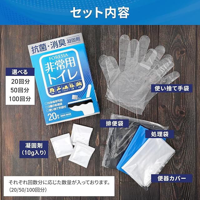 FORESIA 非常用トイレ 100回分 15年保存 簡易トイレ 凝固剤 使い捨て手袋つき