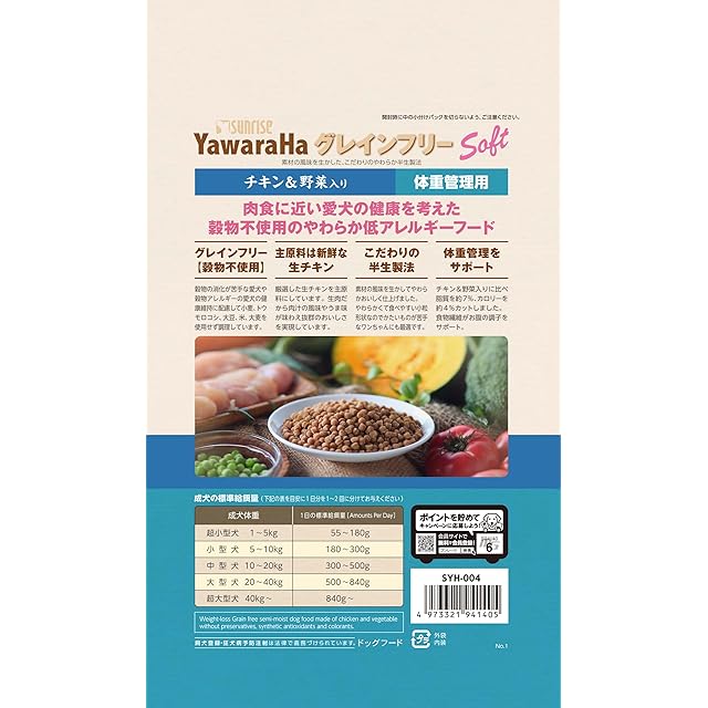 サンライズ ヤワラハ グレインフリー ソフト チキン&野菜入り 体重管理用 600g×2個セット