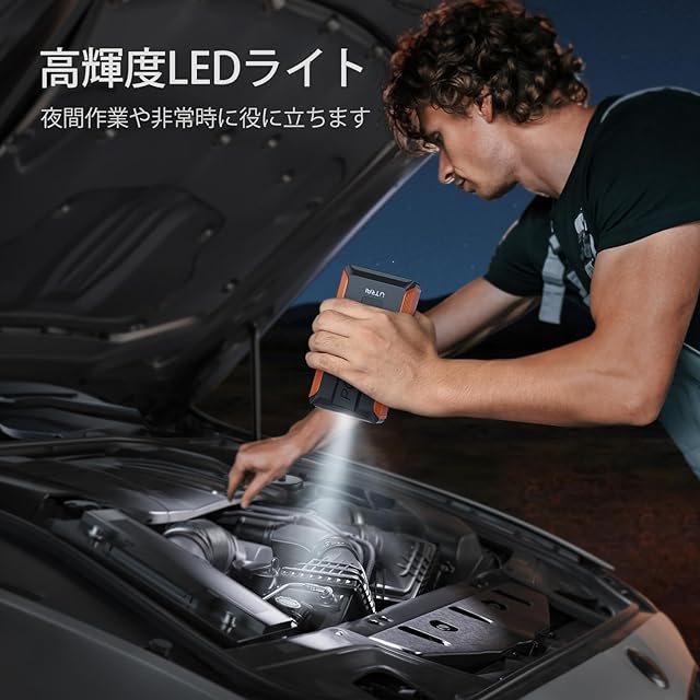 ⛽【LED緊急ライト】エンジンスターターはLEDライトが備わっており、夜間での作業時にはランプとしても使用できます。ライトは照明、SOS、警告の三つのモードがあります。緊急時には救助信号を送ることもできます。幅広い使用用途があるアイテムです。