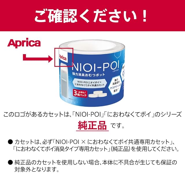 Aprica(アップリカ) 【純正品】 強力消臭おむつポット ニオイポイ×におわなくてポイ共通カセット 3個パック ホワイト NIOI-POI 取り替え用カセット3P (2023年モデル)