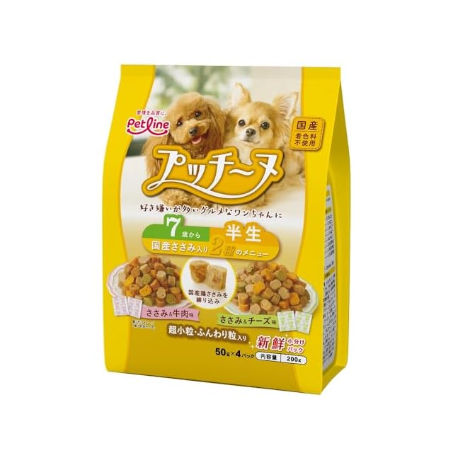 プッチーヌ 半生 7歳から 国産ささみ入り 200g(50g×4) ソフト 国産 無着色 アソート 小分け 200g(50g×4)
