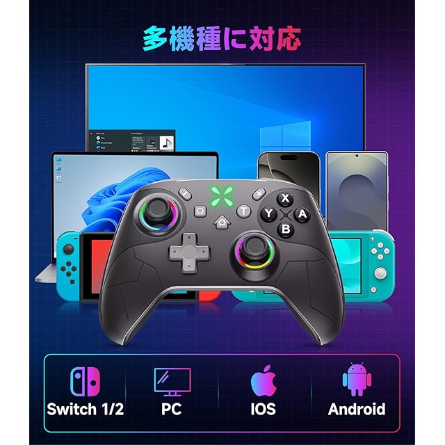【2025革新モデルSwitchコントローラー Pro】革新版スイッチ コントローラーはSwitch1代/2代/Android/IOS16.0 以上/PCに幅広く対応。従来品の最大不満だった「スティックドリフト」を完全解決!★磁気ホールセンサー採用のダブルホール機能設計で物理摩耗を排除。→ 500万回動作テスト通過(耐久性10倍)、従来モデルと比較して長期間使用でも安定した精度を維持。★競技級精度:0.01mm微調整可能(誤差±0.3%未満)。日本ユーザー向けにABXYボタン配置を純正同様に最適化。お子様からプロゲーマーまで、すべてのプレイヤーにおすすめ。プレゼントにも最適なプロコン。