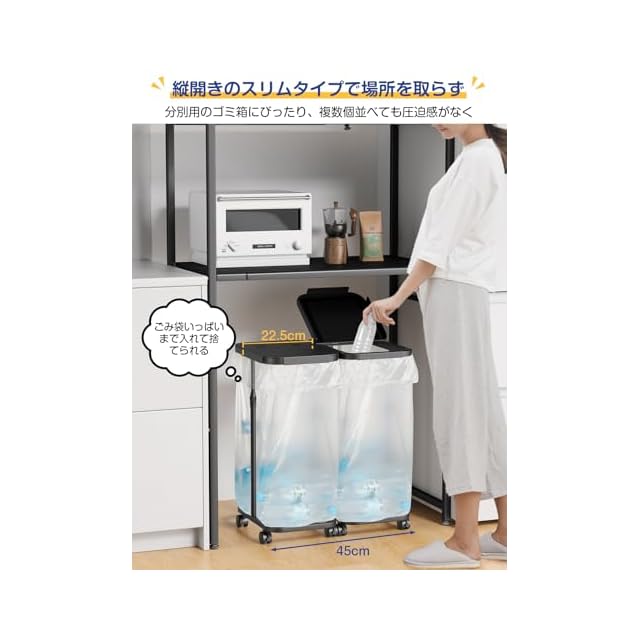 [高さ伸縮可]ゴミ袋ホルダー 20L~90L対応 TTWO ゴミ箱 蓋付き におい遮断 分別ゴミ箱 塵袋ホルダー 30L 45Lなど ゴミ袋スタンド ゴミ捨て簡単 ポリ袋ラック レジ袋スタンド リサイクルスタンド エコ スリム おしゃれ 使いやすい キャスター/アジャスター両方付き (2SET-タテ-ブラック)
