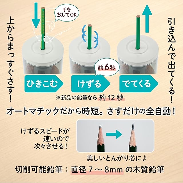 プラス 鉛筆削り 電動鉛筆削り 上からさすだけ オートマチック SASITEMI サシテミ FS-760 アイボリー 84-019