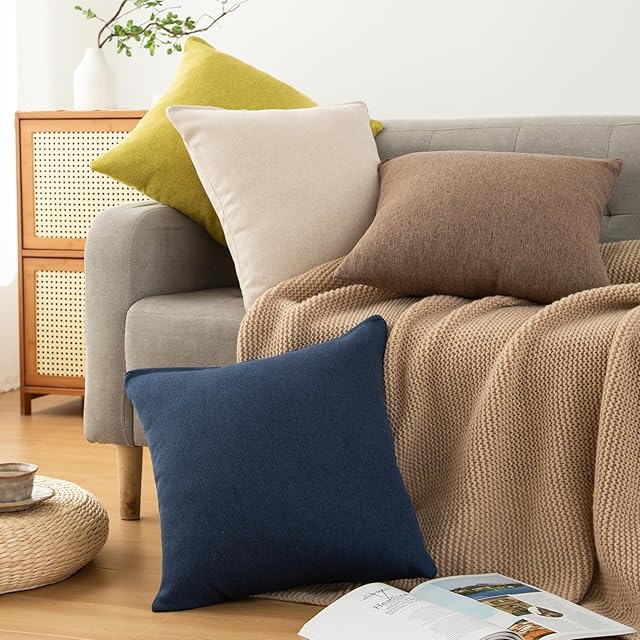 Haguko クッションカバー 45 45 2枚セット 北欧 おしゃれ 綿麻テクスチャー リネン風 ピーチスキン ソフトタッチ ソファ背当て 装飾枕カバー キャラメルブラウン