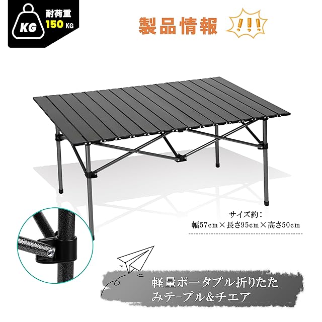 BEIKEMALL アウトドア テーブル チェア セット キャンプ テーブル57cm×95cm×50cm ピクニックテーブル 超軽量 折り畳み 組立簡単 収納バッグ付き BBQ お釣り ガーデン キャンプ用品(ブラック)