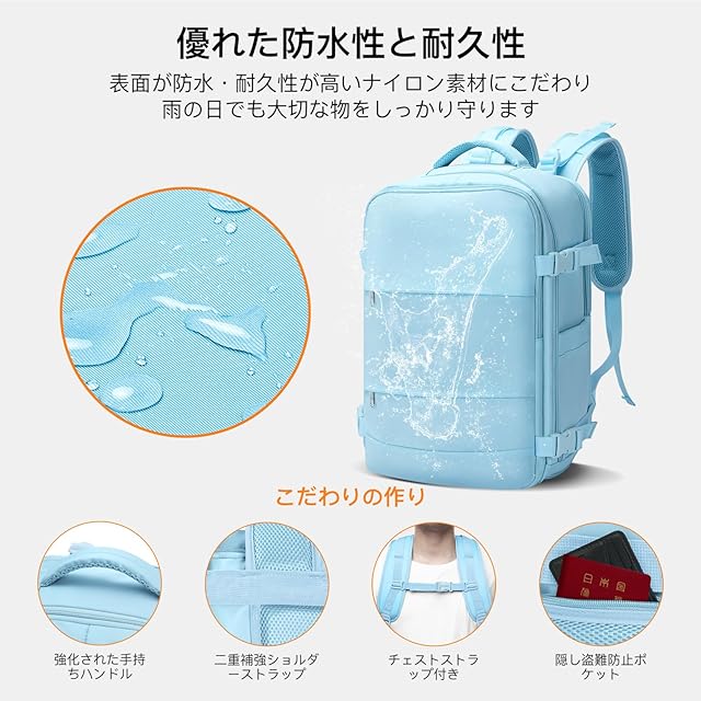 【プロ級の耐久性】撥水素材採用:雨の日の通勤や飛行機の手荷物預け時も中身をしっかり保護してくれます。滑らかなSBSジッパー:全箇所SBSファスナーを採用、スムーズな開閉と長持ちする品質を実現します。高密度ナイロン素材:毎日の通勤リュックとして、コンクリート地面との摩擦に耐える特別加工されて、業界標準比1.8倍の耐摩耗性を実現します。