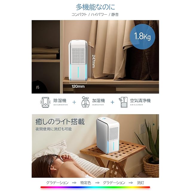 除湿機 小型 強力 【除湿・加湿・空気清浄3in1】 ペルチェ式 除湿器 衣類乾燥 湿度調整 イオン機能付き 集塵フィルター 除加湿空気清浄機 1L大容量タンク タイマー付き カビ防止 結露防止 梅雨対策 花粉対策 除湿空気清浄機 除湿乾燥 部屋干し 20畳 狭所向け 七色ライト付き コンパクト 静音 省エネ (プロ版-ホワイト)