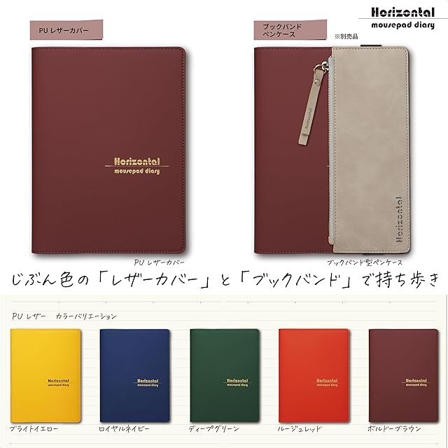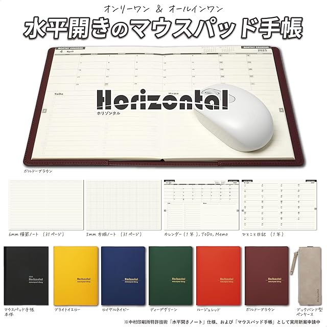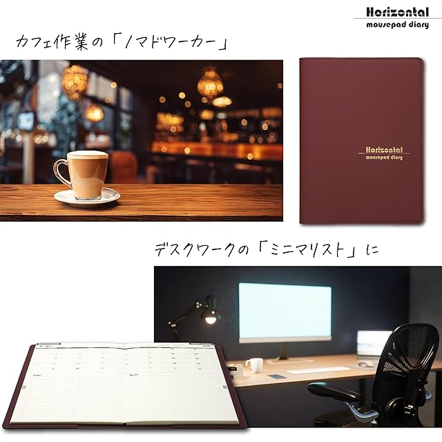 Horizontal 水平開き オールインワンのマウスパッド手帳 [2025年4月始まり] 手触りの良いしっとりレザーカバー 日本製 | (ボルドーブラウン)