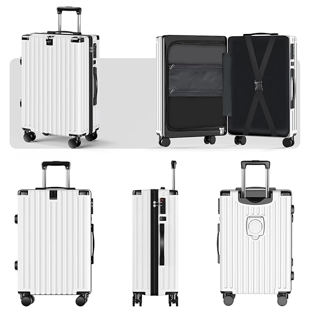 [Augustre] スーツケース 機内持ち込み 超軽量 キャリーケース 大型 軽量 多機能 キャリーバッグ 静音 耐衝撃 ダブルキャスター S/M/Lサイズ カップホルダー付 USB充電機能 隠しフック機能 360度回転 TSAローク搭載 ファスナー式 旅行 ビジネス 出張 (ホワイト, M(4~7泊/65L))