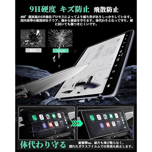 【硬度9H・キズ防止】400°超高温の2次強化プロセスにより、弊社の ヴェルファイア 40系 カーナビ保護フィルム はより耐久性があり、強く割れにくくなります。国内基準の硬度9Hをクリア、傷から画面を守ります。体代わりとなって守り、大切なお車の価値を高く保ちます。2.5D弧形エッジ処理、破片も飛び散らなく、割れたガラスフイルムでの怪我も防止します。