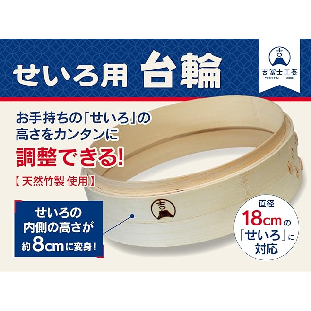 【吉冨士工芸】 竹せいろ用 18cm 高さ調整用の台輪 中華 せいろ専用 天然竹使用 茶碗蒸など、高さのある蒸し料理最適 (18cm調整輪)
