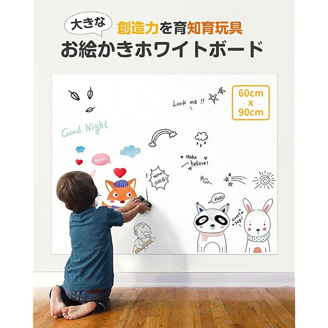Kelaisen ホワイトボード シート 粘着式 壁に貼り付け マグネット対応 取り付け簡単 自由に裁断 子供落書き オフィス掲示板 メモ 書きやすく拭きやすい (60x90cm)