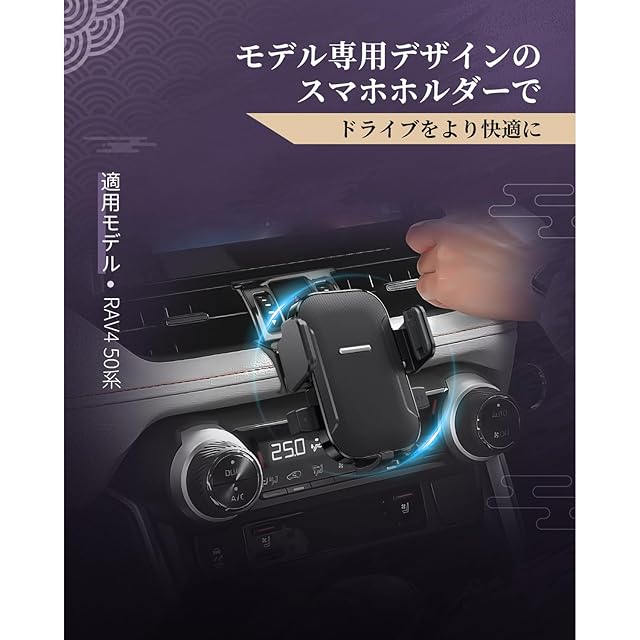 LUWU RAV4 50系専用スマホホルダー 360度回転・ワンタッチクリップ 携帯ホルダー スマホスタンド RAV4 アクセサリー ラヴ4 ラブ4 カスタムパーツ